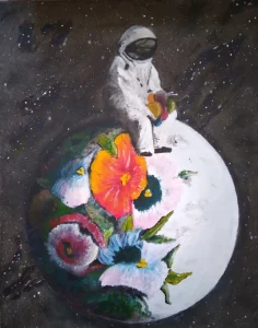 Peindre est activité où il est facile d’apprendre et de se perdre un peu. C’est aussi un bon exercice de concentration. Je peins à l’acrylique. Je m’inspire de courants figuratifs (impressionnisme, néo-expressionnisme) pour créer des visages et des paysages.