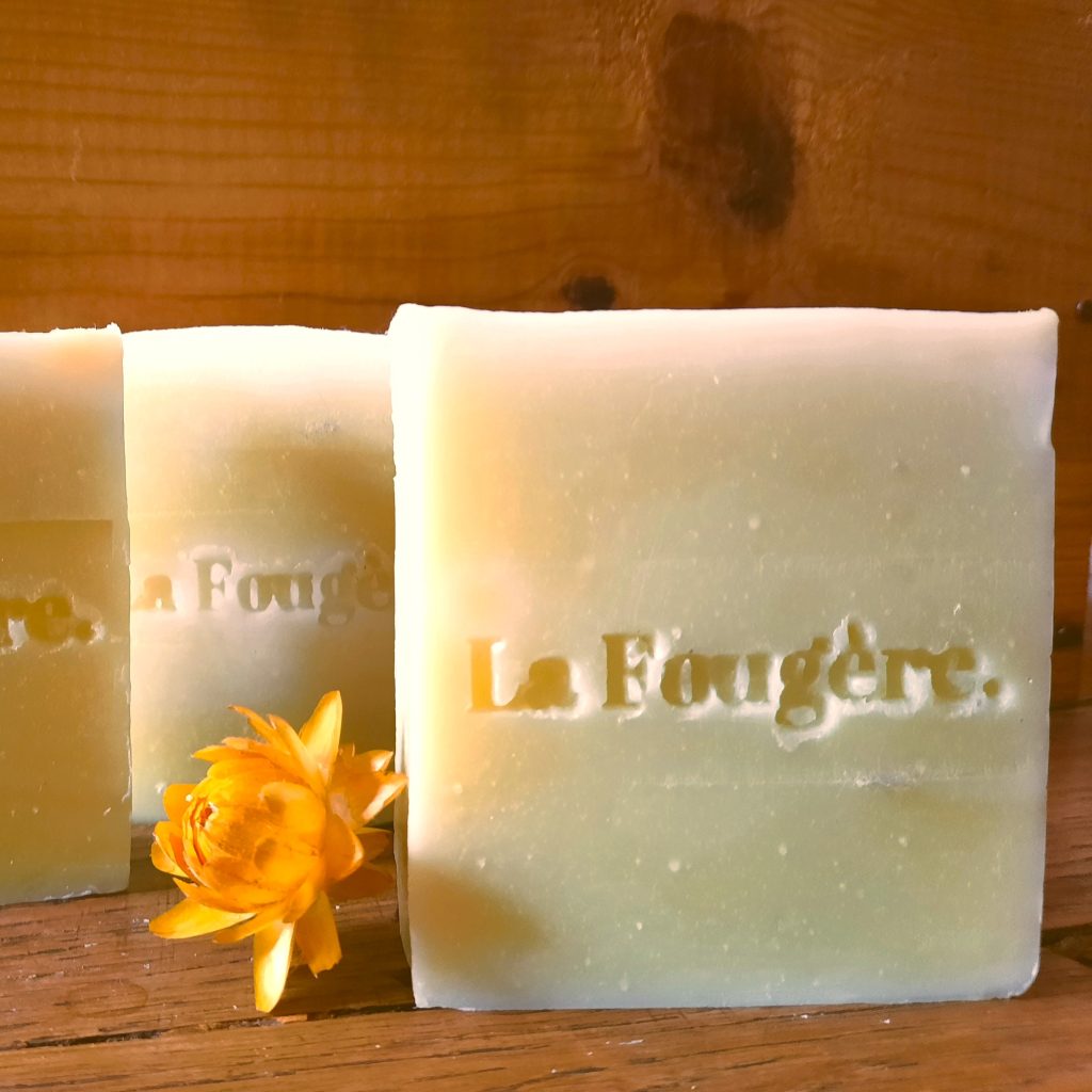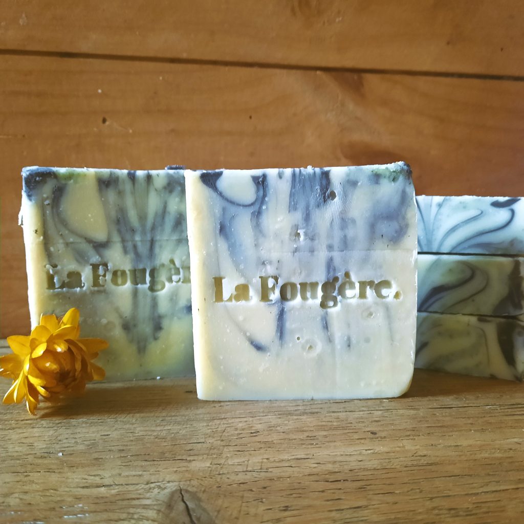 Le nom : La Fougère ! Pour l’odeur de la forêt après la pluie, la fraîcheur de la mousse et le calme des sous-bois. Pour le nom des savons je me suis inspiré de groupes ou de chansons.